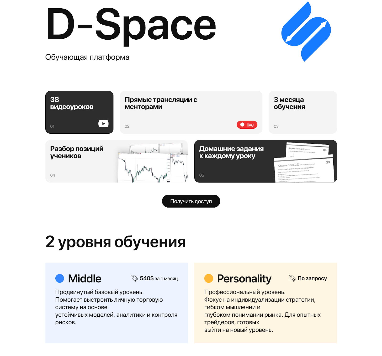 - D-Closed, цена обучения рассчитывается индивидуально, в зависимости от набора учебных материалов, которые выбирает сам студент на Dept Ai.