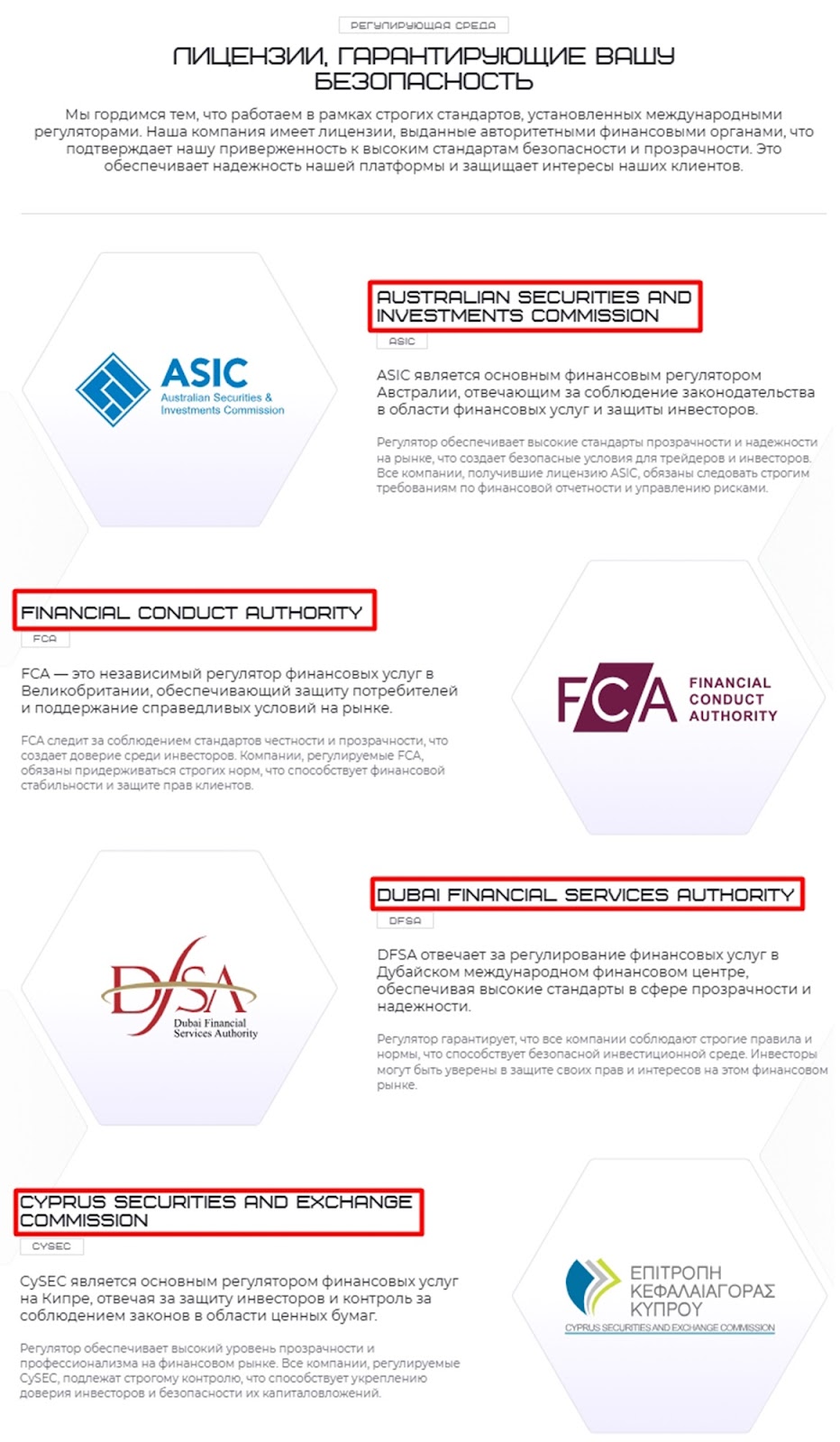 Компания desaicorp демонстрирует международные торговые лицензии. Например, проект с 2017 года регулируется ASIC, FCA, DFSA и CySEC. Но организация не внесена в реестр Нац.банка России, что увеличивает риск потери депозита на финансовом рынке.