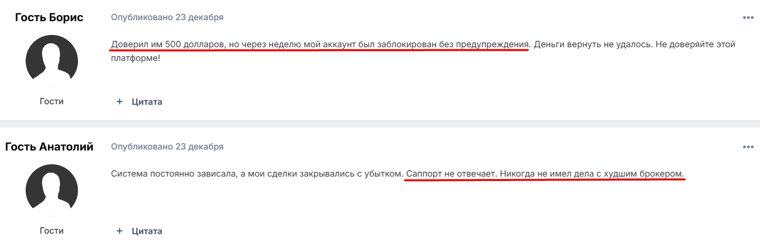 - У компании не предусмотрена надежная система безопасности, что повышает риск мошенничества при брокерских сделках;