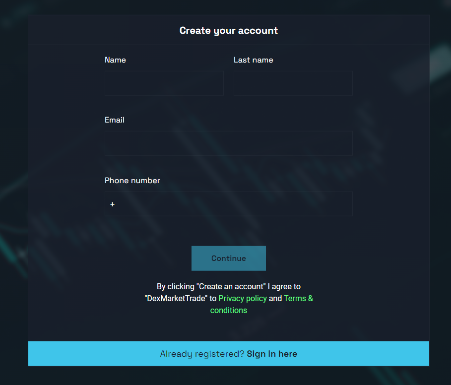 Dexmarkettrade com — официальный сайт брокера, доступ к которому можно получить только после регистрации. Компания позиционирует себя, как ведущая платформа для торговли криптой, но к ее прозрачности есть немало вопросов. Дата создания неизвестна, нет информации о юридической регистрации и лицензиях. Вряд ли эту биржу можно назвать надежной.