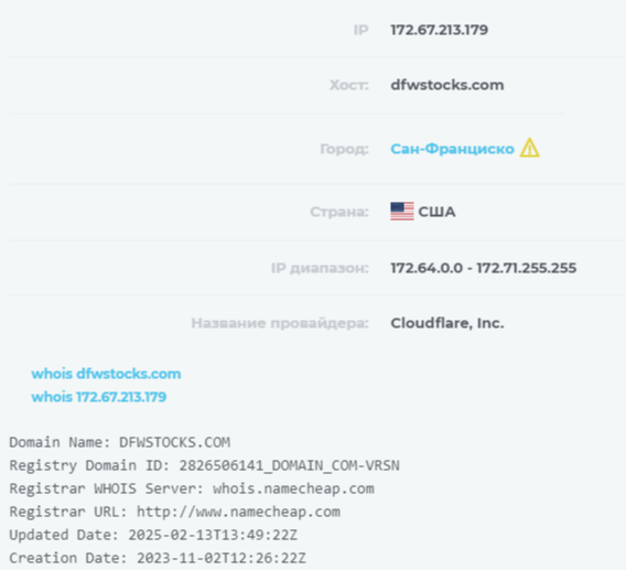 Исходя из нашей проверки, реальный возраст площадки «Дфвстокс» всего один месяц. Об этом говорит: