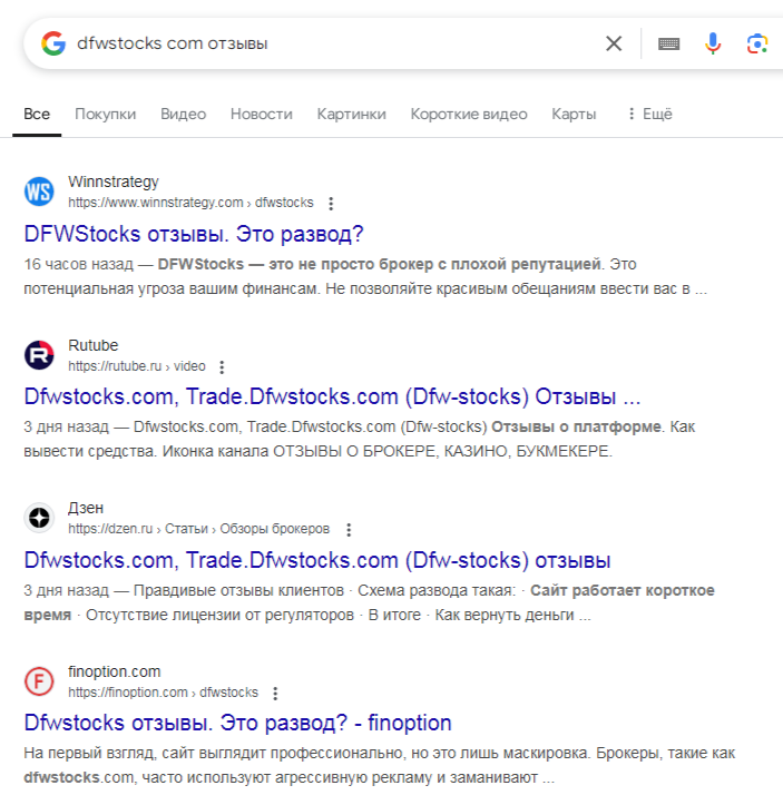 Дополнительно мы решили узнать информацию о брокере на просторах интернета. Но в сети его репутация оказалось не очень позитивной. В адрес Dfwstocks Com нашлись только отрицательные отзывы и обвинения, что это мошенник.