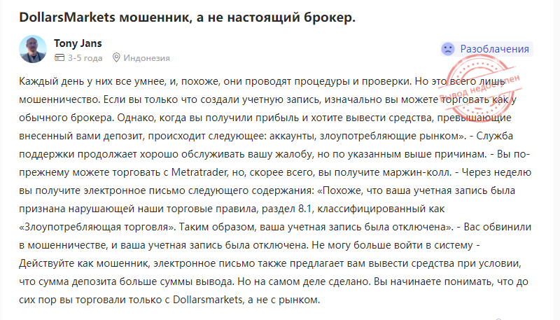 Подробный обзор брокера DollarsMarkets: анализ отзывов, оценка деятельности проекта