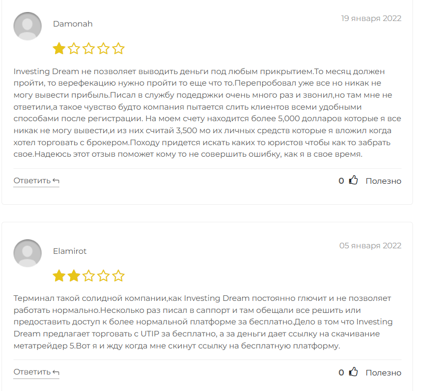 - Комментарии о Dream Money зачастую были отрицательные, соответственно клиенты часто оставались в убытке, а также сталкивались с риском потерять вложенные деньги и доход.