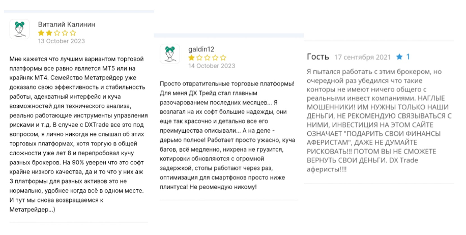 В отзывах про ДХ Трейд преобладают нарекания на плохое качество и нестабильную работу программных продуктов компании. Но есть и «откровения», в которых пользователя КАПСОМ кричат о том, что работая с платформой DxTrade, вы просто отдадите деньги мошенникам.