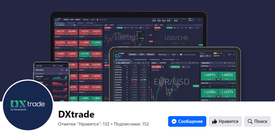 Складывается впечатление, что страницу на Facebook забросили и не развивают вообще. Посты однотипные (новости компании и рынка), без лайков и комментариев. В основном все они — репосты статей из блога на сайте компании Dx Tradecom.