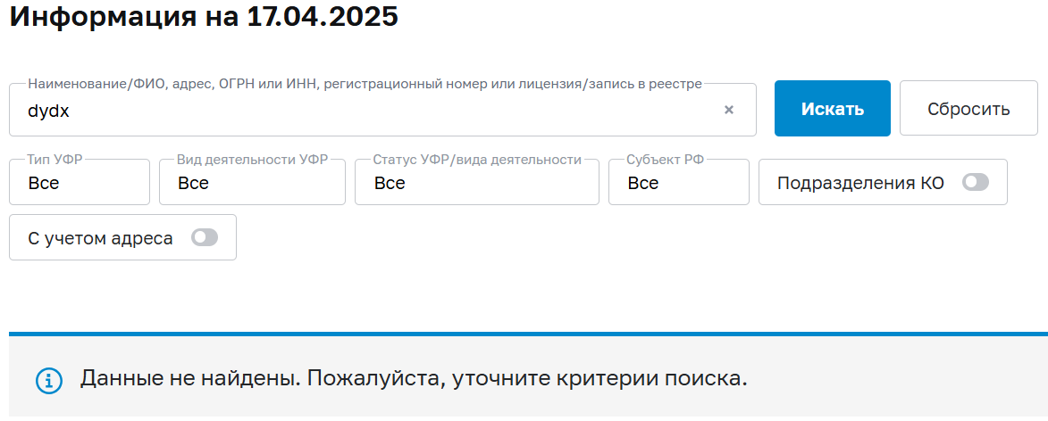 Еще один важный для обзора dydx момент – у сервиса нет разрешения от ЦентроБанка России. Организация действует на территории нашей страны нелегально. Понятно, что это одна из особенностей многих децентрализованных бирж. Но те, для кого важен официальный статус терминала, советуем обратить на это внимание.