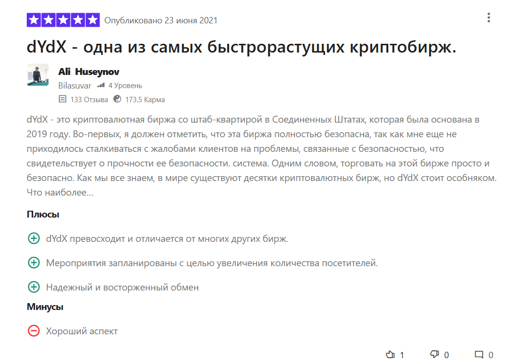 Какие о dydx отзывы