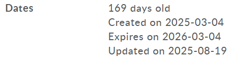 - указанная на сайте дата работы и дата регистрации домена не совпадают;
