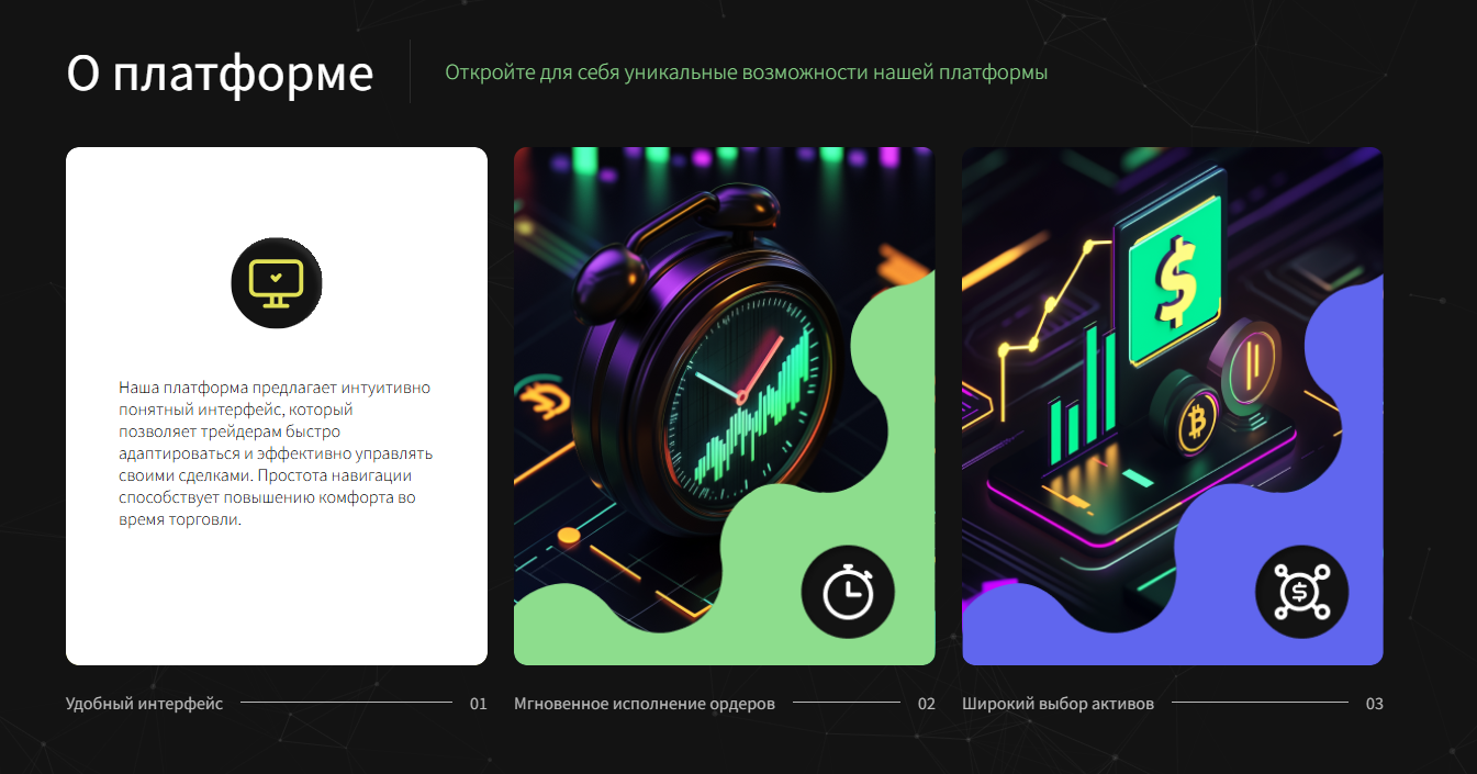 Сайт шаблонный, что вселяет недоверие к брокеру. Нет оригинальности, в интернете существуют десятки подобных ресурсов с одинаковым дизайном. А потому нельзя исключать риск развода, из-за которого можно потерять деньги.
