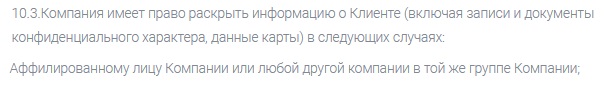 Некоторые моменты в разделе «Условия и положения» свидетельствуют о том, что конфиденциальная информация о клиентах находится в опасности. В отдельных пунктах утверждается, что площадка может делиться персональными данными своих посетителей со сторонними организациями.