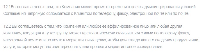 В предоставленной документации есть моменты, вызывающие сильные сомнения в надежности брокера. Некоторые разделы правил свидетельствуют о возможном рекламном контенте. Обычно это значит, что после регистрации клиент будет получать большое количество спама.