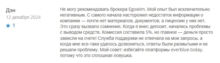 При тщательной проверке информации о компании нам удалось найти несколько комментариев. При этом оказалось, что почти все отзывы о Egowim Today являются отрицательными.