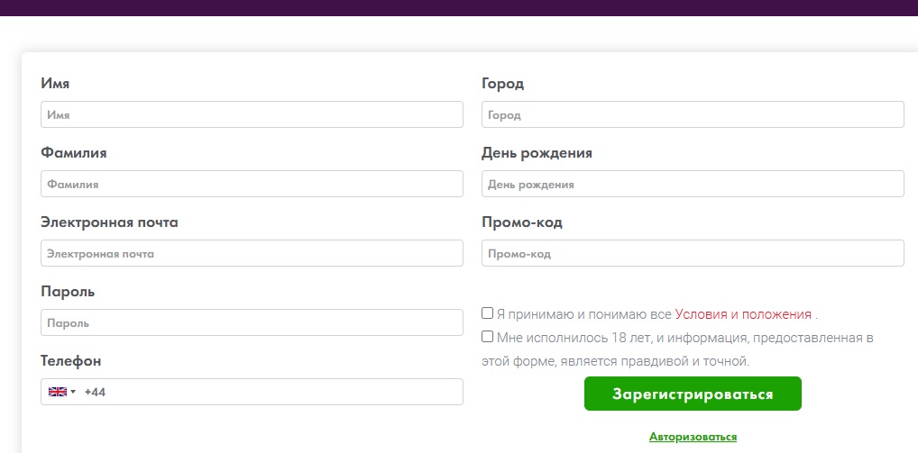 Регистрация начинается со специальной формы, которая подразумевает ввод персональных данных. Нужно указать имя, дату рождения, место нахождения адрес электронной почты и номер телефона. Также необходимо ввести промокод, который указывает на закрытость проекта.