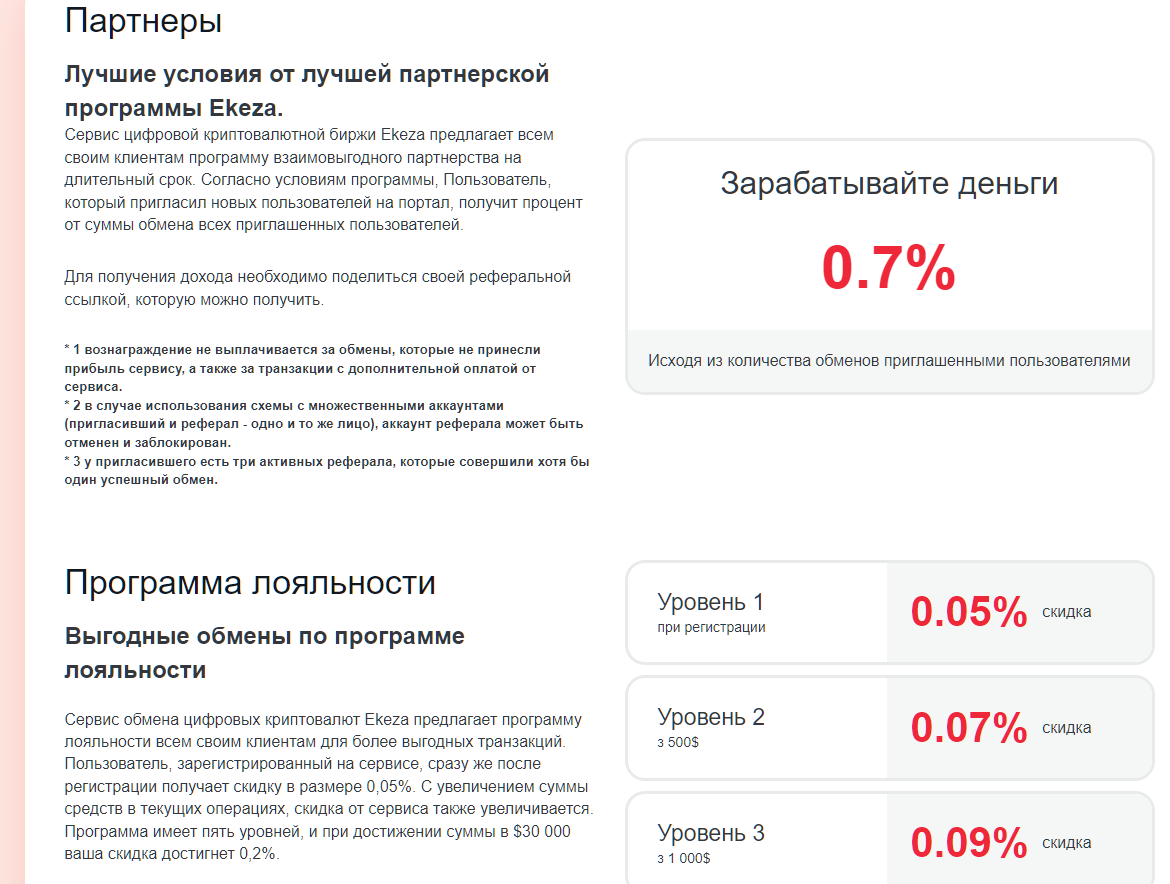 Кроме выгодного курса обмена, который на 15% процентов ниже рыночного, пользователям предлагают выгодную реферальную программу.