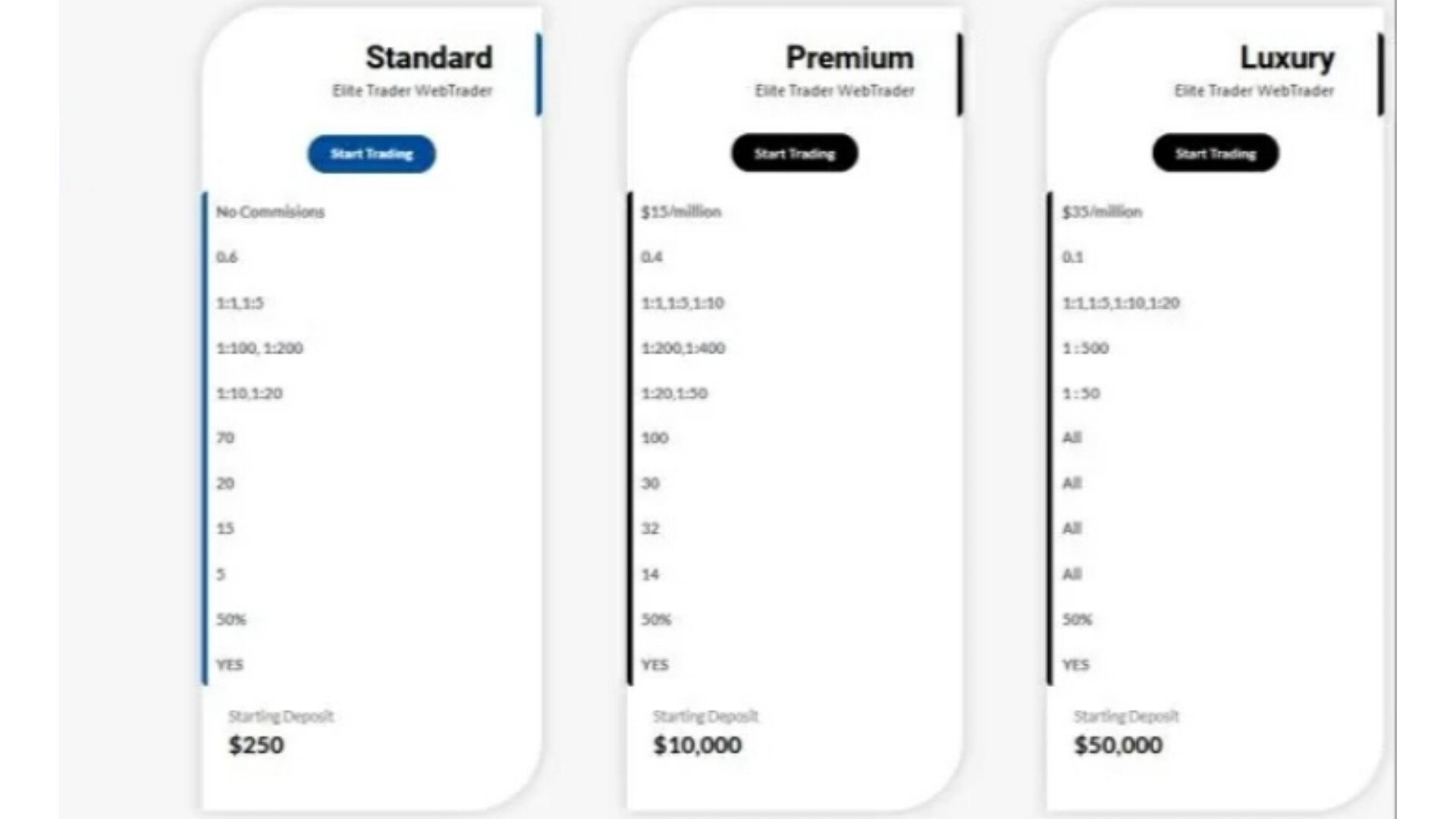 • Luxury с депозитом от 50 тыс. долларов. Кредитное плечо до 1:500