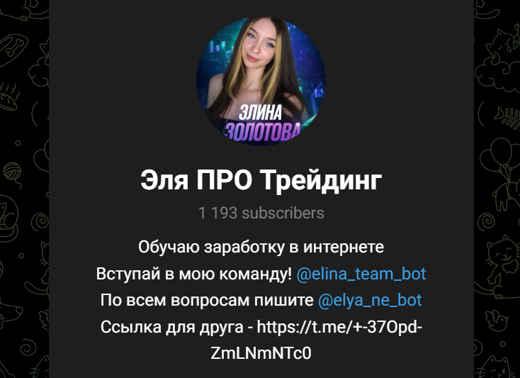 В телеграм-канале «Эля ПРО Трейдинг» пользователям предлагают возможность заработать на трейдинге с помощью специального бота. Автор ТГК сама зарабатывает таким образом, может помочь с обучением использования программ, а также расскажет о трейдинге. Присоединиться к ней могут все желающие, для чего требуется выполнить соответствующие инструкции. В этой статье мы рассмотрим, действительно ли тут можно что-то заработать или пользователей ждет очередной развод от мошенников.