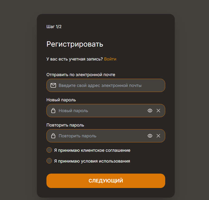 Чтобы начать пользоваться инструментами площадки Emb Trade Org, необходимо зарегистрироваться и пройти для этого два этапа. На первом пользователь вводит: электронную почту и пароль, после чего ставит галочки напротив «Я принимаю клиентское соглашение», «Я принимаю условия использования». На втором этапе регистрации на Market Qvix Pr нужно будет внести много личных данных такие как паспорт, номер телефона, адрес.