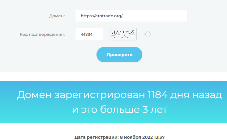 Биржа якобы работает с 2006 года, но домен сайта зарегистрирован в ноябре 2022 года. Аферисты сильно преувеличивают возраст своей площадки.