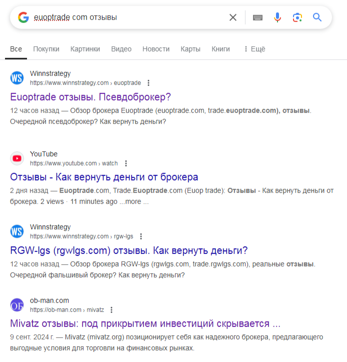 Скорее всего, эти сайты – лохотроны, созданные одними и теми же аферистами. О том, что это мошенники, говорят и отзывы как о euoptrade com, так и о его скам-клонах,