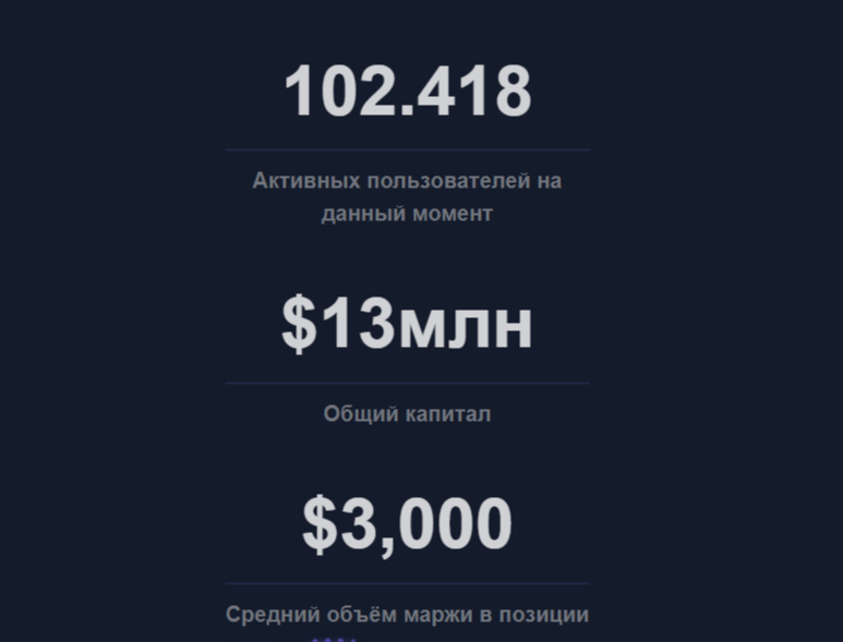 - 102 418 трейдеров на сегодняшний день торгуют на площадке;