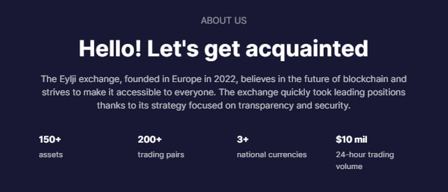 О способах внесения и вывода средств на бирже Eylji отсутствует любая информация до регистрации аккаунта. Возможно она становится известной после, но это не факт.