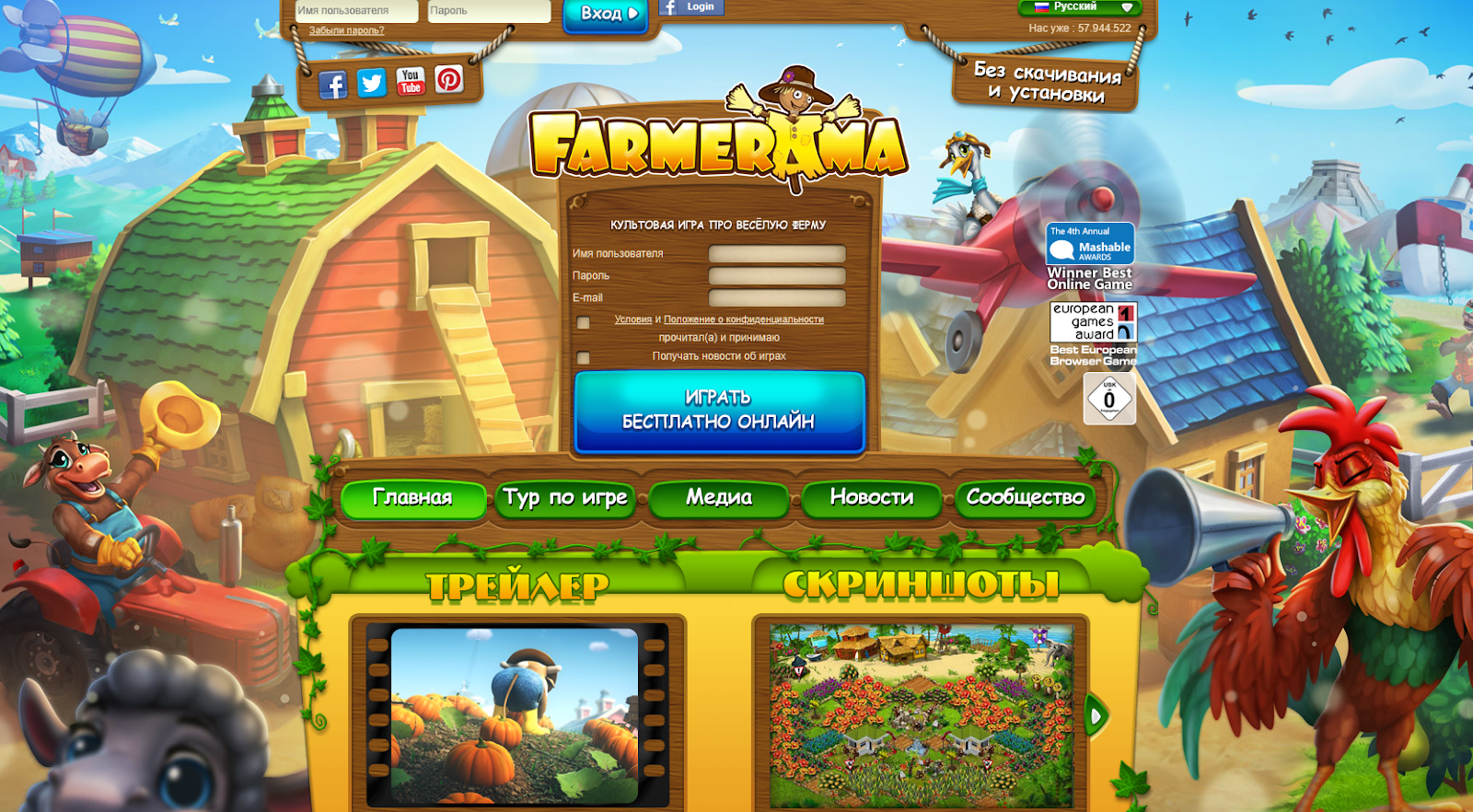 Сайт farmerama com доступен без vpn на разных языках. Есть русская версия и подробная инструкция. Даже новичок сможет быстро разобраться в технологии этой игрушки.