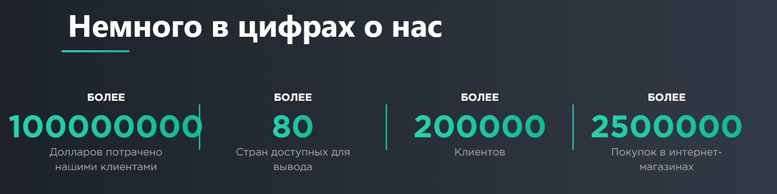 - Более 80 стран доступных для вывода;
