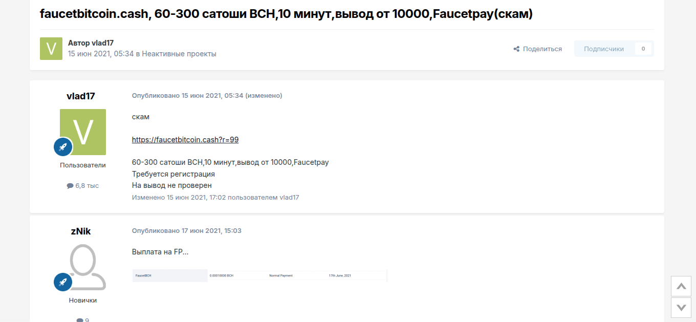 Отзывов о бирже Faucet Bitcoin Cash в сети нет. Пользователям проект абсолютно не интересен. Однако на Bits Media мы нашли упоминания фрилансеров о платформе, что якобы были выводы. Но комментарии за 2021 год и считать их за отзывы в привычном понимании не стоит, потому что нет конкретики.