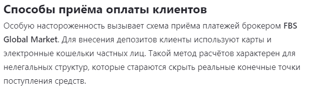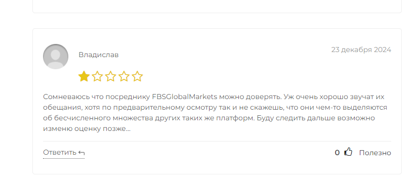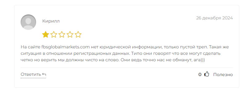 На сторонних ресурсах, мы обнаружили, что оценочные мнения о проекте лишь сугубо негативного характера. Основные претензии пользователей из отзывов направлены на большое количество мошеннических схем в FBS Global Markets, по типу беспричинной блокировки аккаунтов и нерабочей техподдержке, которые делают сотрудничество неудобным и небезопасным.