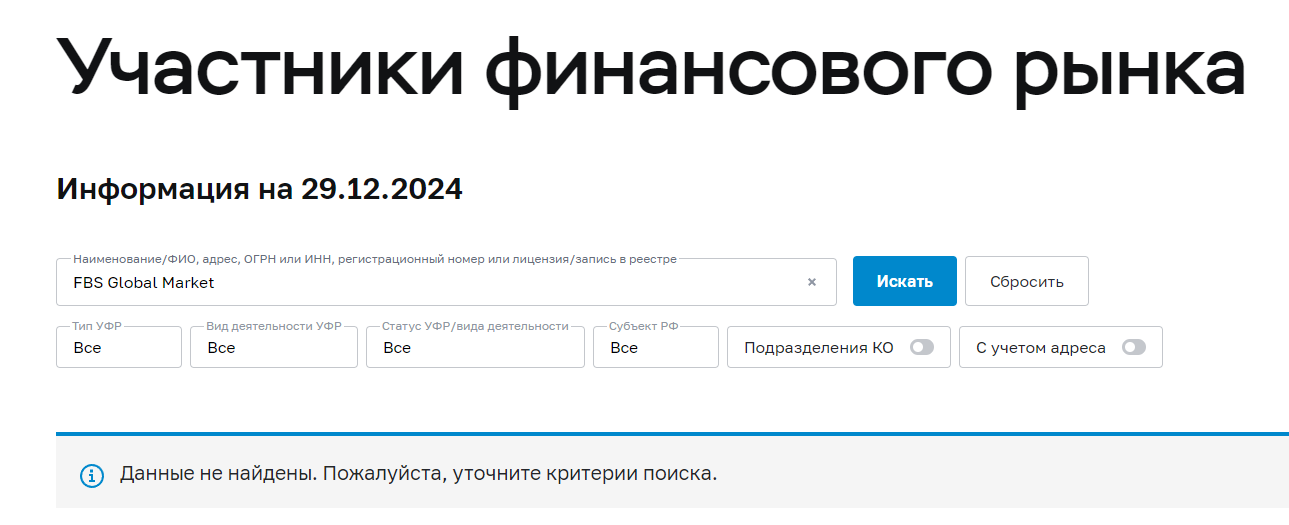 Мы не рекомендуем вам FBS Global Market.