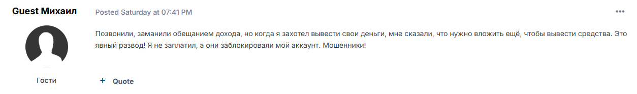 - повторяющиеся жалобы на невозможность вывода крупных сумм и требования дополнительных платежей для снятия;