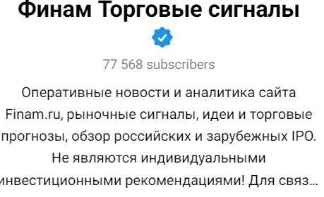 Для получения актуальной информации доступен Finam Alert telegram. Здесь регулярно выкладывается информация об эффективных стратегиях, сигналах, обзоры рынка, котировки, также пользователи могут поделиться своим опытом торговли.
