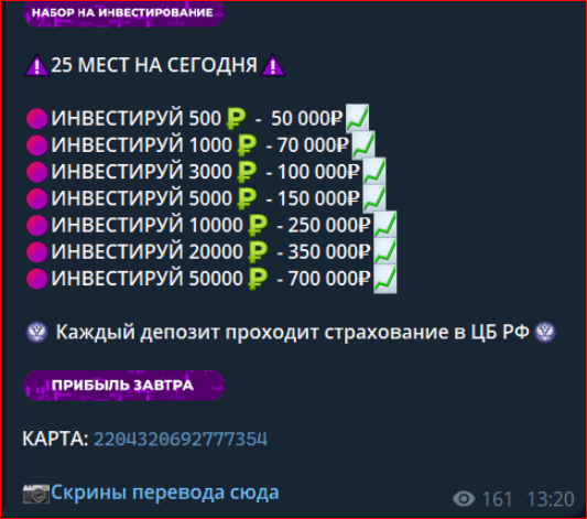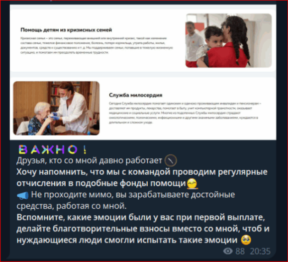 Она просит не проходить мимо и делать туда свои отчисления. Показывает свои суммы переводов в эти фонды, тем самым завоевывая уважение у своих подписчиков. Конечно, сложно понять, – можно ли доверять или нет такому способу заработка. Поэтому мы попытаемся донести всю суть этой схемы через его особенности. Вот некоторые из них:- Практически все посты посвящены тому, что админ просит внести депозит, подкрепляя это публикациями с успешными историями сделок и чеками переводов клиентам.