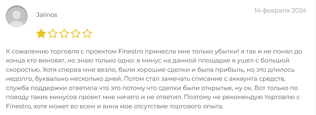 Отзывы трейдеров о работе с Finestro