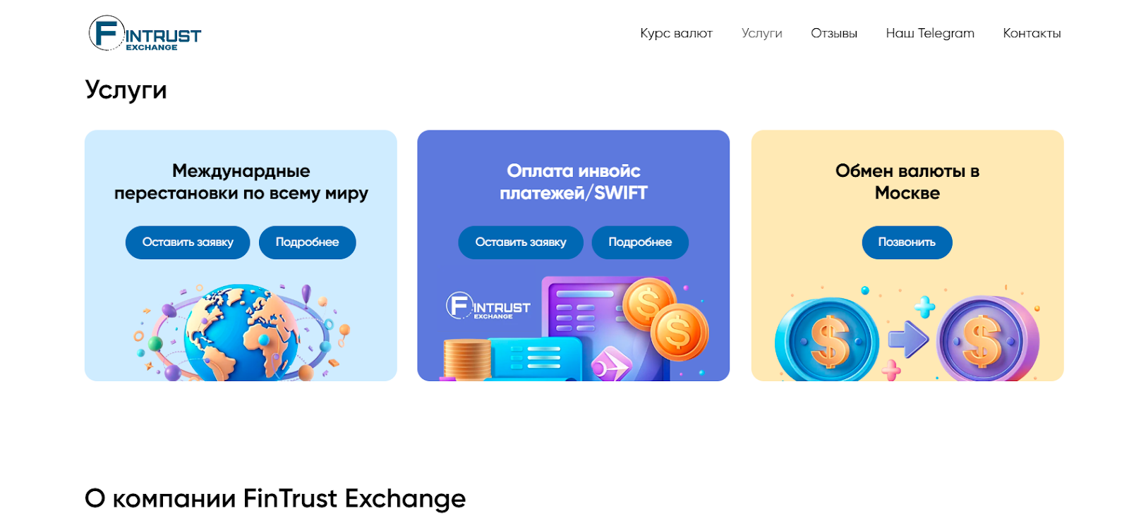 Брокер FinTrust Exchange — валютный обменник с сайтом и парой Telegram-каналов, который позиционирует себя как сервис с лучшими курсами в Москве.
