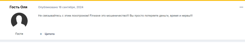 Брокер Finwave обладает отрицательной репутацией. Трейдеры пишут, что проект фейковый и с ним можно только потерять деньги, а не заработать.