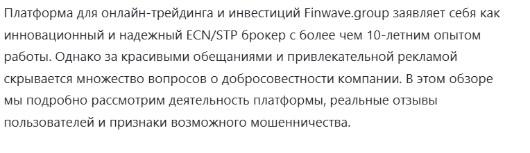 Мы не рекомендуем торговать на «Фин Вейв» по указанным причинам.