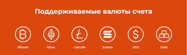 Валютный счет может быть пополнен в долларах, эфирах, биткоинах и ряде других криптовалют. Минимальный взнос баланса не установлен.