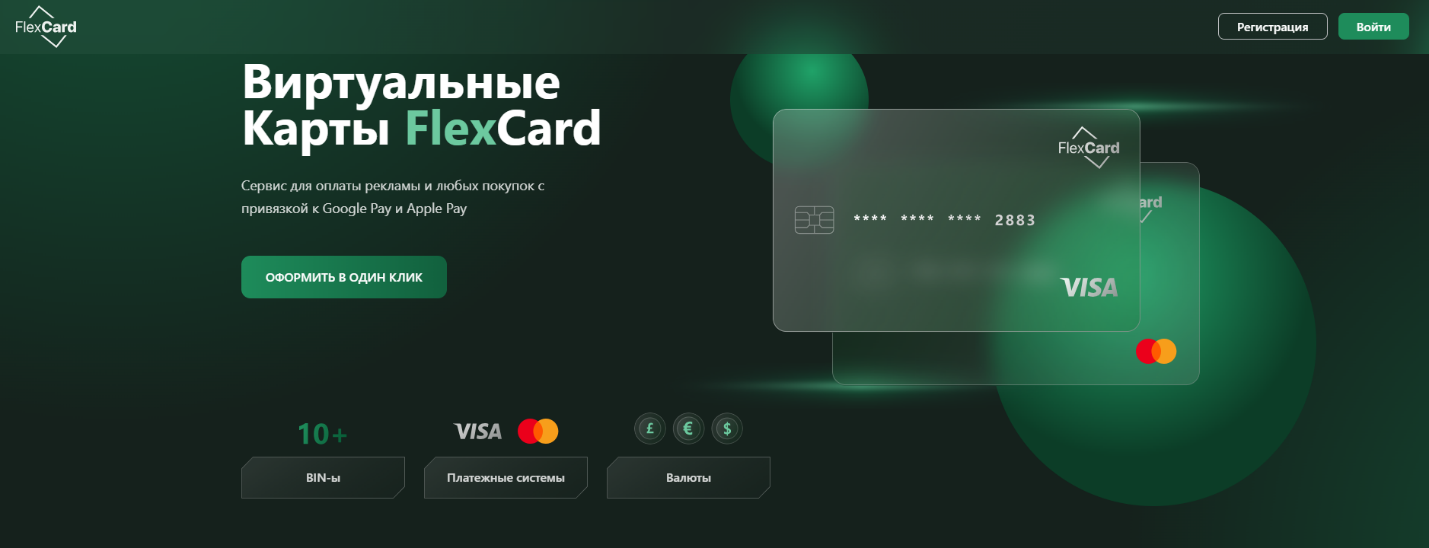 Платежная система FlexCard ориентирована на зарубежные онлайн-платежи. Сервис позволяет блогерам и трейдерам р2р арбитража пополнять счета на популярных платформах Facebook, TikTok, Google, работать с зарубежными биржами и брокерскими площадками.