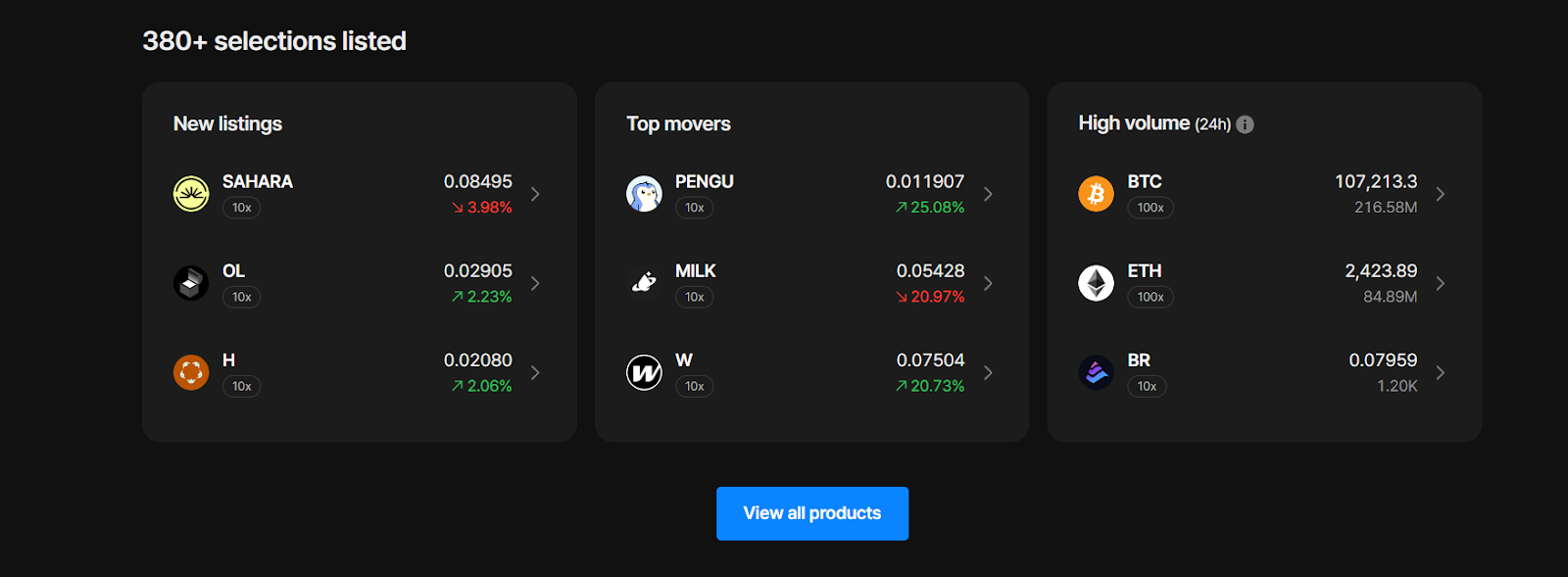 Flipster Official предлагает доступ к более чем 250–350 криптовалютным активам. И это включая основные Flipster криптовалюты BTC, ETH, SOL и альткойны, а также мемкоины. Есть нулевая комиссия на сделки, минимальные сборы за вывод и депозиты.