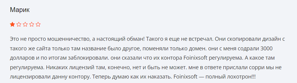 Отзывы о Foinixsoft Com отрицательные, положительных мнений о проекте нет.