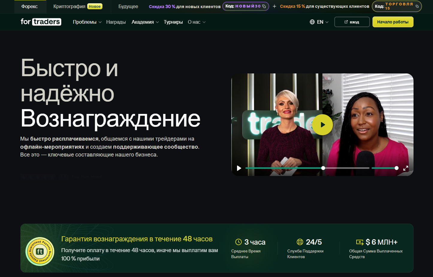 На ForTraders com, в разделе «Rewards» компания публикует отзывы реальных людей об услугах брокера. Около 11 коротких видео-ревью находятся на странице, где клиенты рассказывают – порекомендовали бы они «Фор Трейдерс» другим или нет.