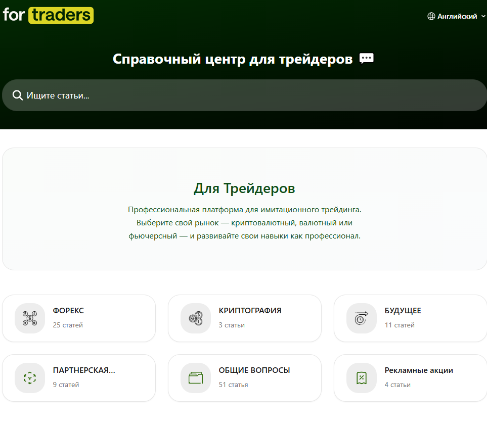 В разделе «О нас», что находится в шапке сайта есть информация о службе поддержки брокера. ForTraders не пишет напрямую о ней сразу, для начала трейдер должен выбрать интересующую его категорию.