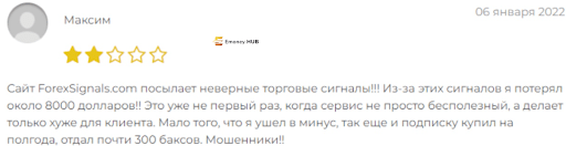 Больше десятка лет брокерская организация делится с трейдерами бесплатными сигналами и предоставляет очень дешевые премиум-счета для торговли. Однако за упомянутое время брокер сайта foresignal com не стал обладателем положительных отзывов. Никто из трейдеров не называет посредника надежным, не благодарит за качественное обслуживание.