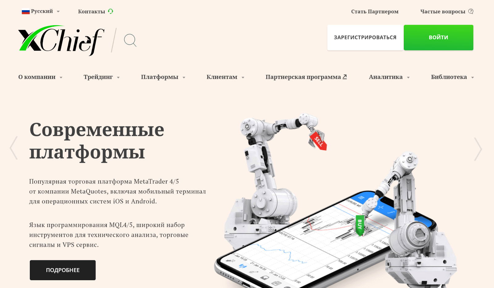 Одним из критериев качества современных брокеров является большой выбор платформ для торговли. На выбор пользователям доступны программы МТ4 и МТ5, которые доступны в веб-версии и в виде мобильного приложения.Трейдеры могут пользоваться программой для смартфонов в xchief. Последняя выделяется простотой пользования, наличием бездепозитного и приветственного бонуса, удобным доступом к службе поддержки.