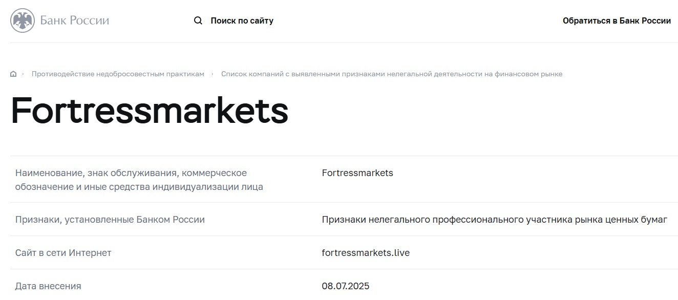 Fortress Markets Limited – торговая марка брокерской онлайн-площадки, предоставляющей доступ к валютным рынкам с якобы выгодными условиями. Однако, судя по большому числу разгневанных клиентов, репутация у брокера далеко не самая чистая. Сегодня мы выясним, является ли данный сервис очередным лохотроном, обманывающим честных трейдеров.