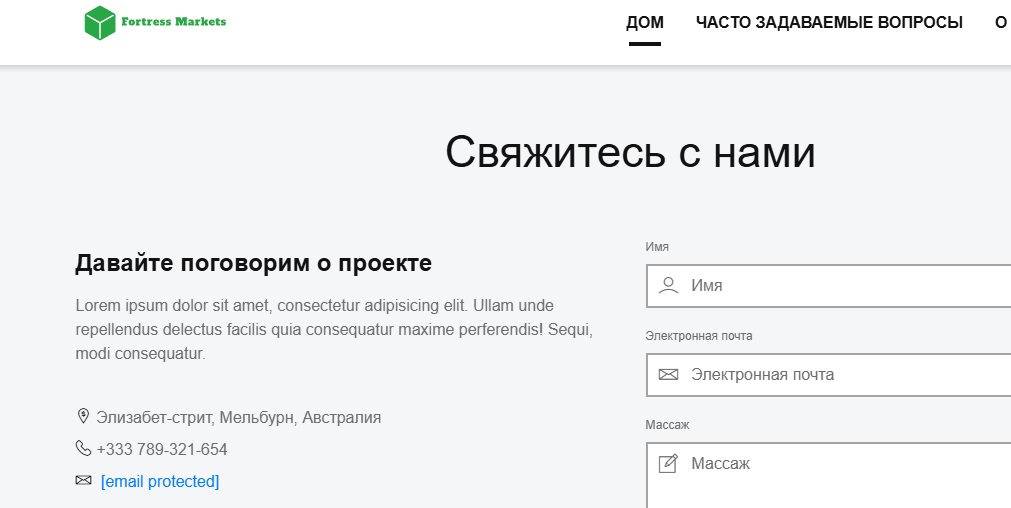 Сведений о регистрации компании Fortress Markets в качестве юридического лица практически нет. Отсутствуют документы, номера и даты регистрации. Известен только адрес офиса компании. Он расположен в Австралии.