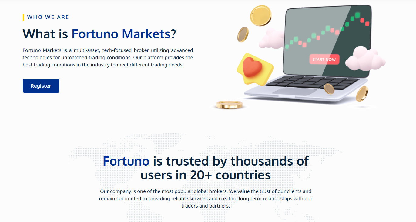 Fortuno Market – это онлайн-брокер, предлагающий трейдерам торговать валютными и биржевыми активами. Компания зарегистрирована в разных странах и завляет о безопасной работе с клиентами.
