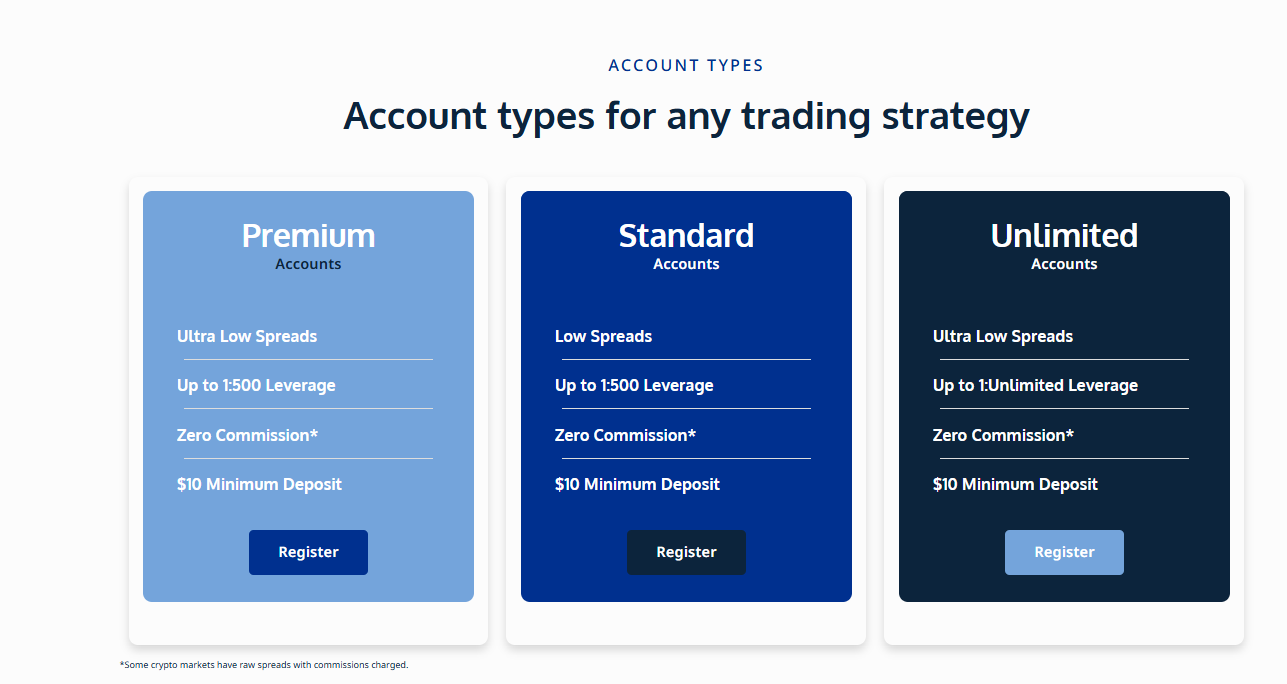 Трейдер может зарегистрировать аккаунт и выбрать один из типов счета. Для стандартного профиля нужно пополнить депозит на $10.